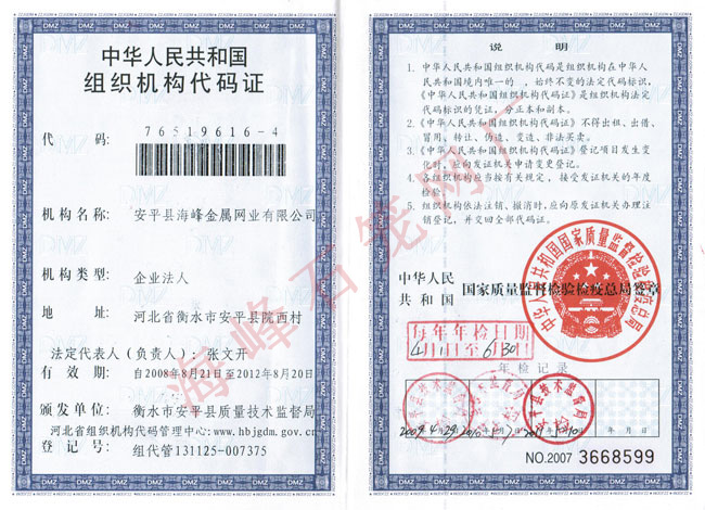 - 安平縣海峰金屬網(wǎng)業(yè)有限公司 安平縣海峰金屬網(wǎng)業(yè)有限公司位于中國(guó)著名的“絲網(wǎng)之鄉(xiāng)”——河北省安平縣,是具有拉絲織網(wǎng)、焊接、剪裁、噴塑、浸塑成品等一整套生產(chǎn)工藝的專業(yè)化廠家。本公司經(jīng)過(guò)多年來(lái)的順勢(shì)發(fā)展,現(xiàn)已擁有廣闊的生產(chǎn)廠房和優(yōu)良的辦公環(huán)境,占地8500平方米,在廠職工100余人。擁有高深的技術(shù)人員,高端的生產(chǎn)設(shè)備,全自動(dòng)的機(jī)械化生產(chǎn)流水線,站在了軋花網(wǎng)、石籠網(wǎng)同行業(yè)的頂端。 查看更多>>